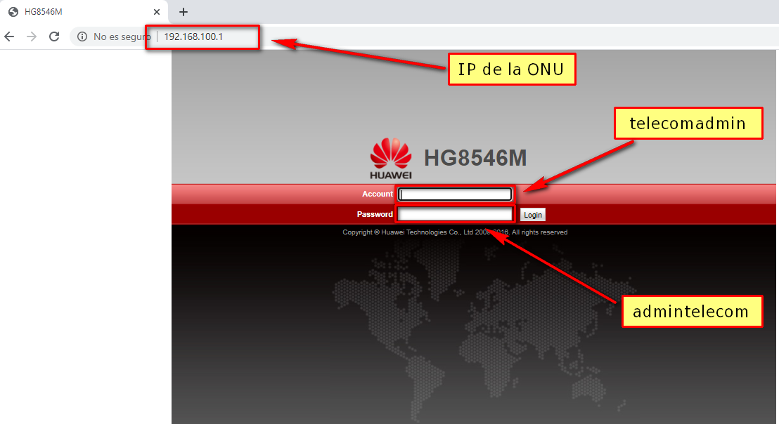 1 Una vez colocada la IP, en el navegador entramos a la IP de la ONU e ingresamos a la interface