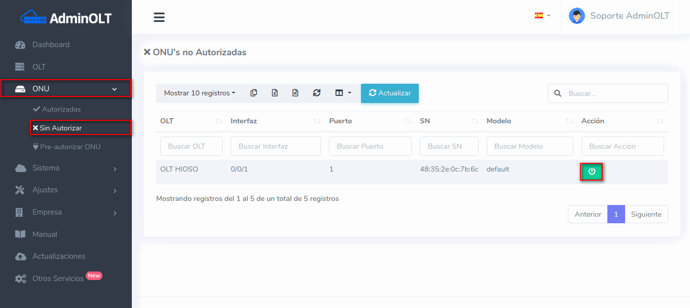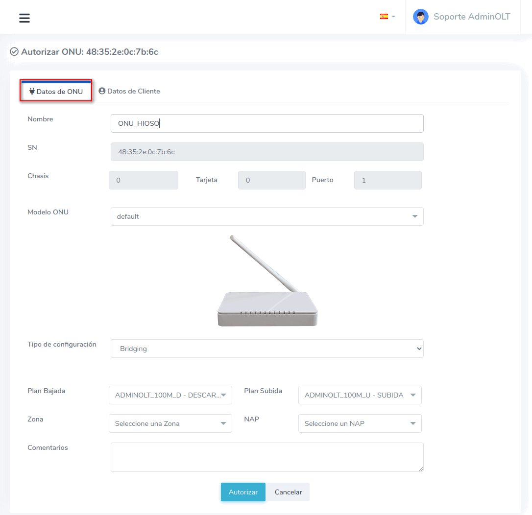 Al conectar un equipo a la OLT, este debe ser autorizado para poder establecer una conexión, a continuación se explican los pasos a seguir para autorizar Onu's en OLT's Hioso EPON desde AdminOLT.