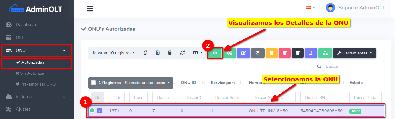 Dar click en el texto Editar en OLT que se encuentra en el botón con la leyenda Editar.