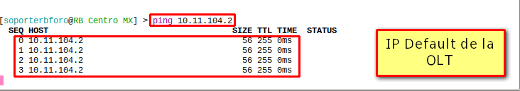 3 Debemos probar la conexión con la OLT con la ip default que se asigno