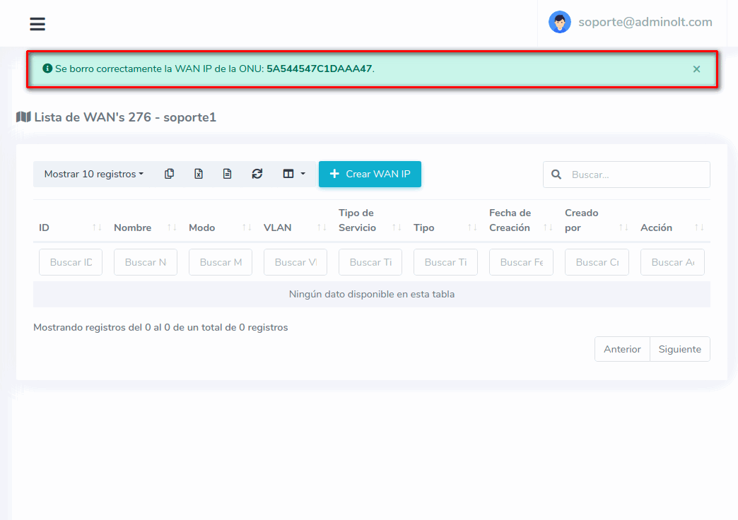 ¿Donde crear configuraciones WAN IP en AdminOLT?