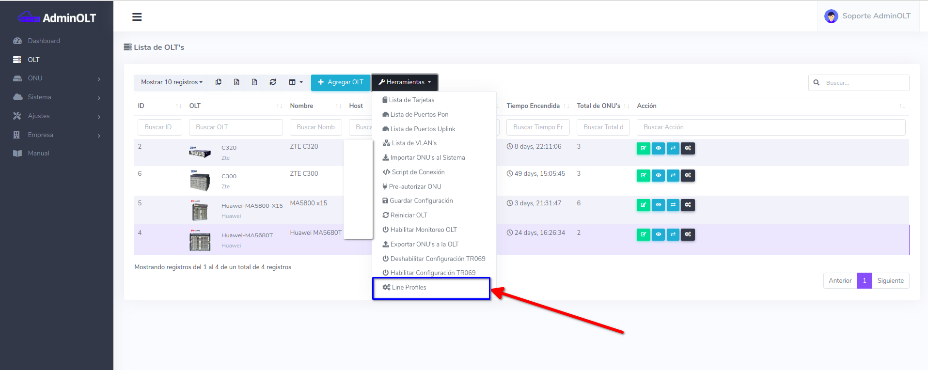 AdminOLT ha integrado una caracteristica para crear configuraciones avanzadas de perfiles de linea, para que los usuarios puedan autorizar sus onus utilizando configuraciones personalizadas y no de la manera tradicional o default en las que las realiza AdminOLT.