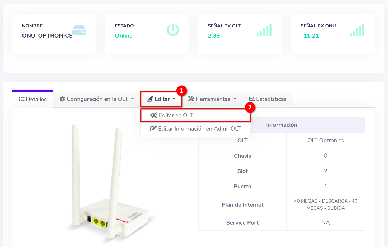 - Editar ONU en AdminOLT desde Detalles de ONU