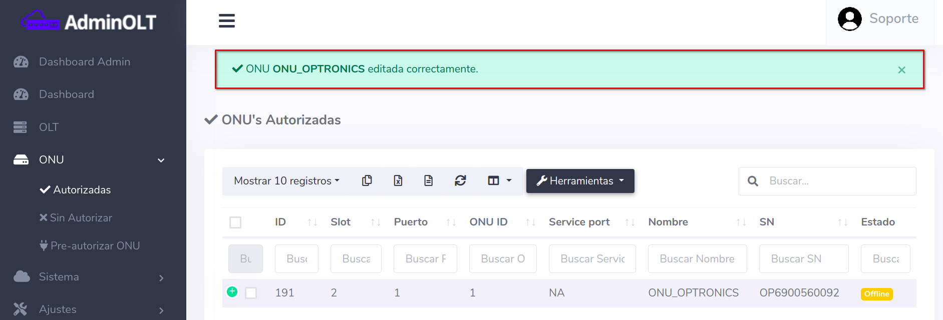 - Editar ONU en AdminOLT desde Lista de ONU's Autorizadas