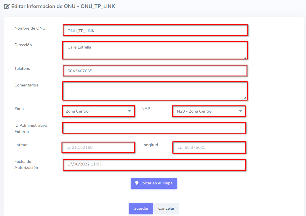 - Editar ONU en AdminOLT desde Lista de ONU's Autorizadas