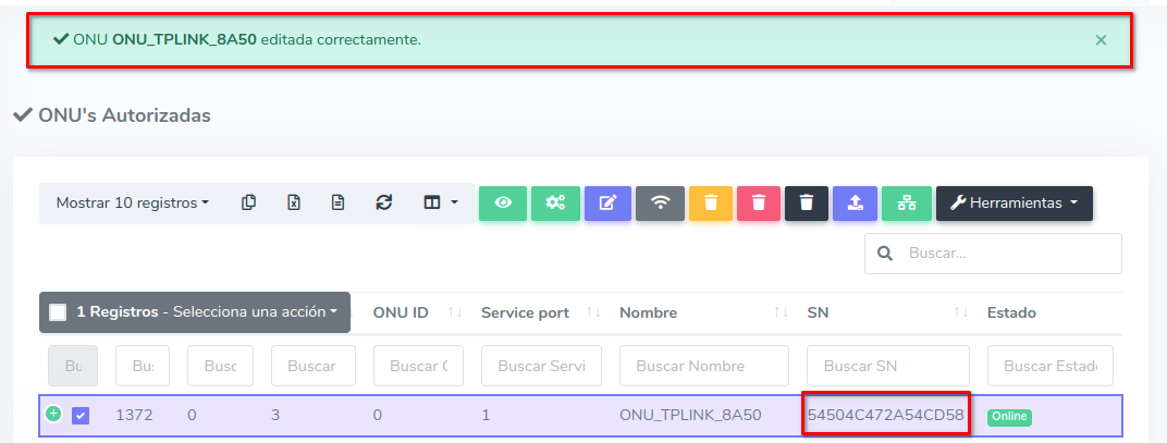 Pasos para editar información de ONU Autorizada por SN