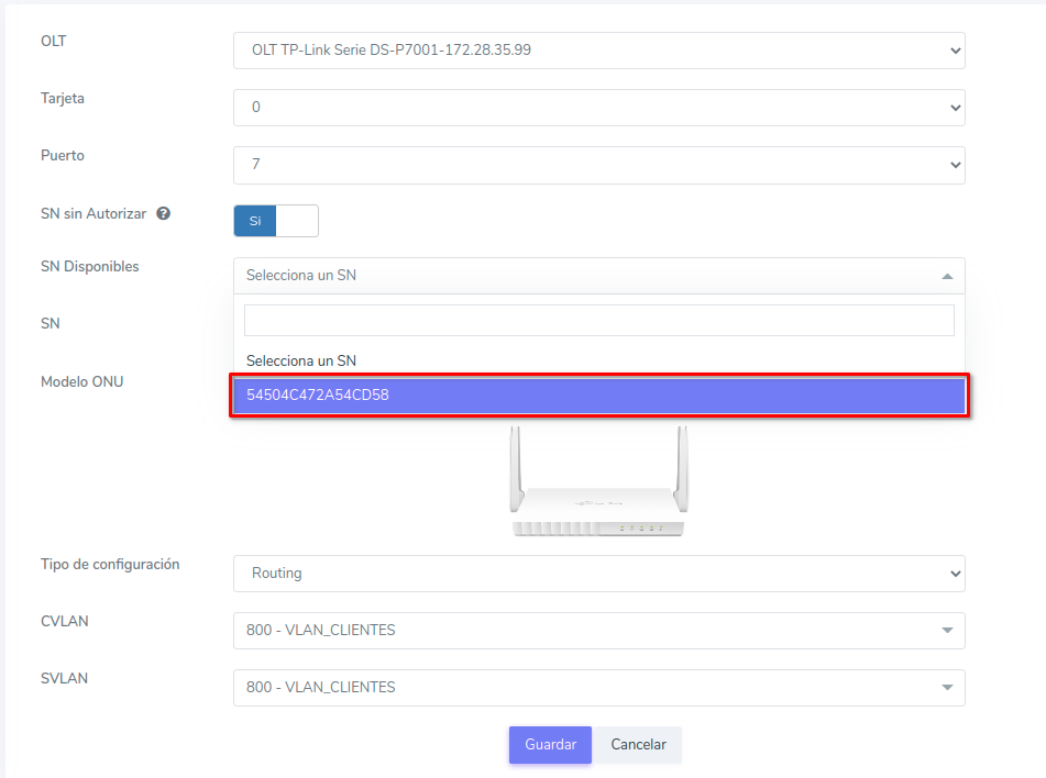 Editar ONU TP-Link Serie DS-P7001 por Numero de Serie (SN)