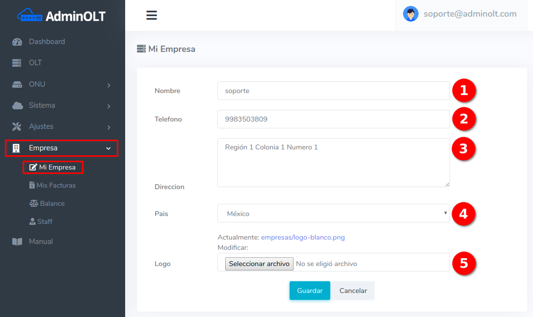 - Direccion: Ingrese la direccion de su empresa o alguna dirección personal.