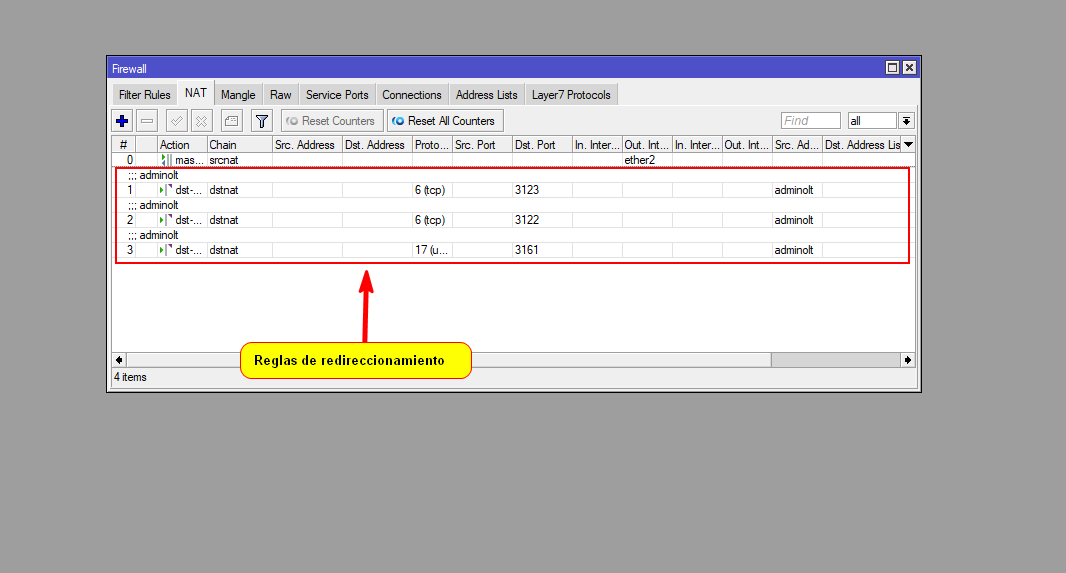 Es importante que los puertos que están asignados en el sistema coincidan con los que están definidos en las reglas de re direccionamiento de puertos.